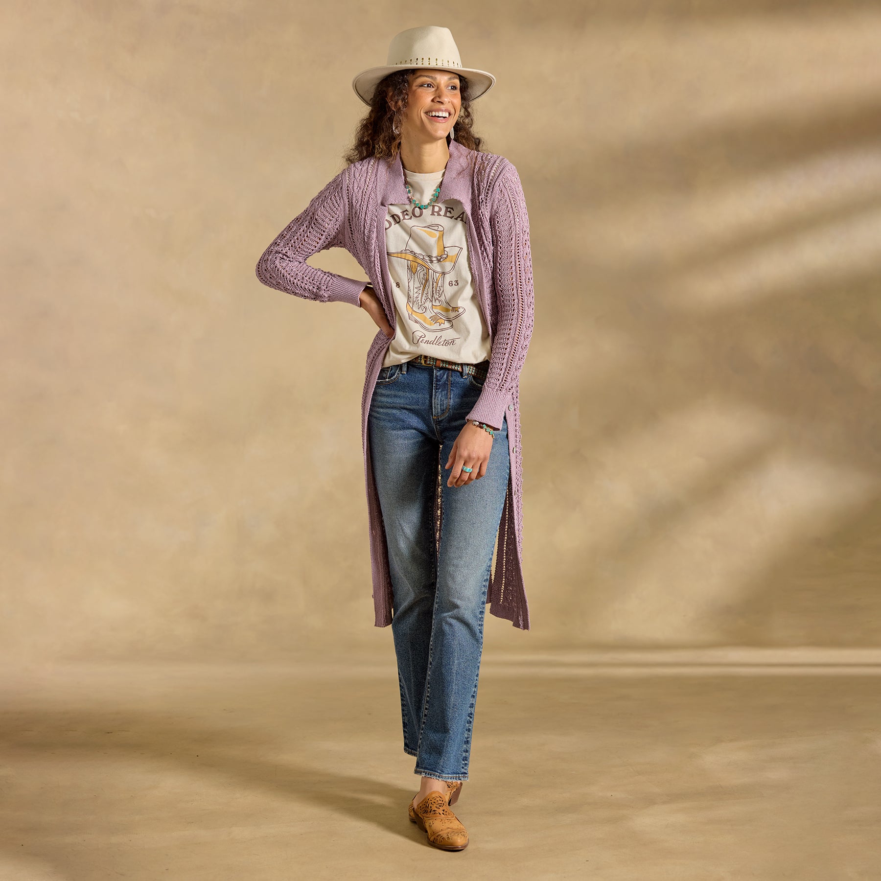Meet our most subtle statement sweater: the Augusta Duster. With lightweight yarn and an artful open stitch. she’s equally cozy over jeans or your favorite maxi. Poly/cotton/nylon/lurex/linen. Hand wash. Imported. Exclusive. Sizes XS (0?C2). S (4?C6). M (8?C10). L (12?C14). XL (16?C18). XXL (20?C22). Approx. 42.5l.