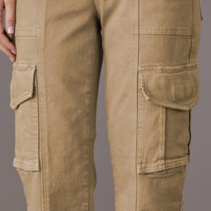 The perfect everyday cargo pants. in stretchy denim with exposed seaming and seven pockets. Organic cotton/spandex. Machine wash. USA. Sizes 24-32. 32 inseam; 11.75 rise; 16 leg opening.