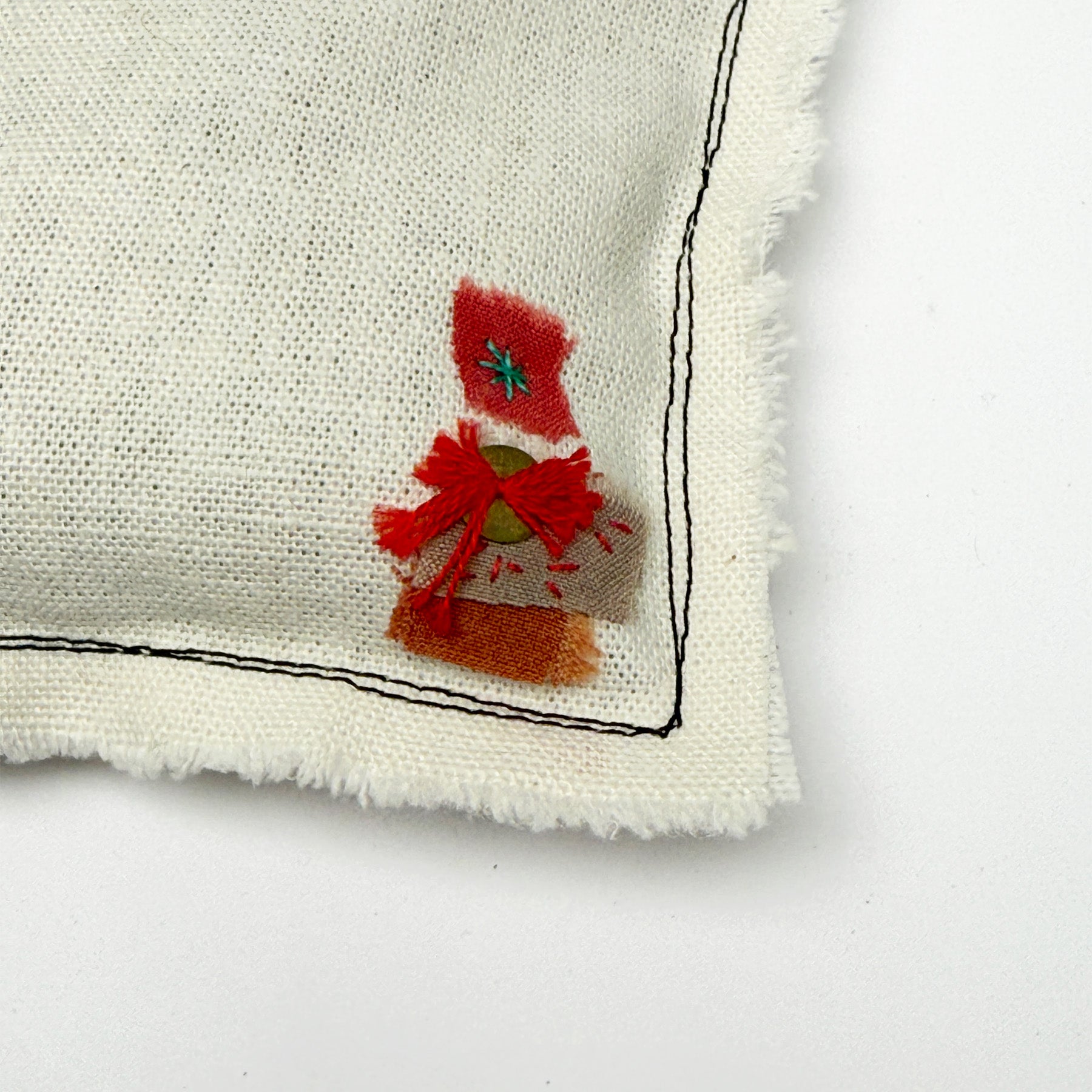 Keep this sweet pillow in a dresser drawer. tuck under your pillow for sweet dreams or incorporate into your home décor. Made of unbleached. organic cotton/hemp canvas and embellished in one corner with a bundle of plant-dyed silk remnants. thread scraps and an antique sequin. Filled with organic lavender buds and buckwheat hulls for the most relaxing aroma. Each is one-of-a-kind. USA. Sundance exclusive. 4-1/2 dia.. 6 dia.